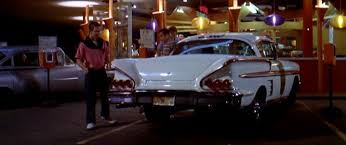 Harrison Ford had worked with George Lucas earlier, in 'American Grafitti', in which the cars don't really go anywhere but do all the talking as the boys cruise to impress the girls in Modesto, California; Terry 'The Toad' has borrowed his mate's 1958 Chevrolet Impala while Harrison Ford as Bob Falfa drives a 1955 Chevy 210. Made in 1973, but set in 1962, it's a more nostalgic look at youth than 'On the Road' or 'Easy Rider' , a series of vignettes of one evening. Francis Ford Coppola had challenged Lucas to write a script for mainstream audiences, which Lucas did using his own early 1960s teen experiences.